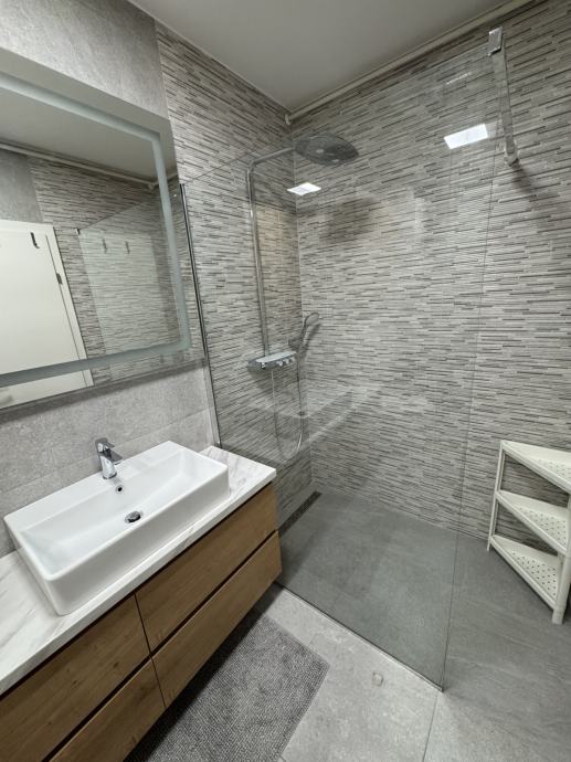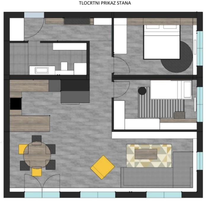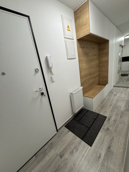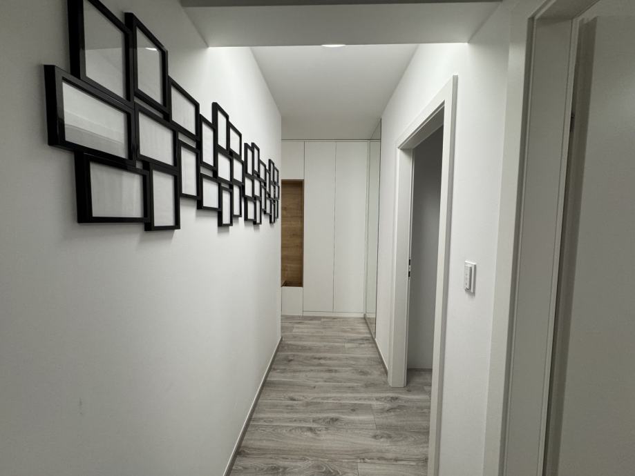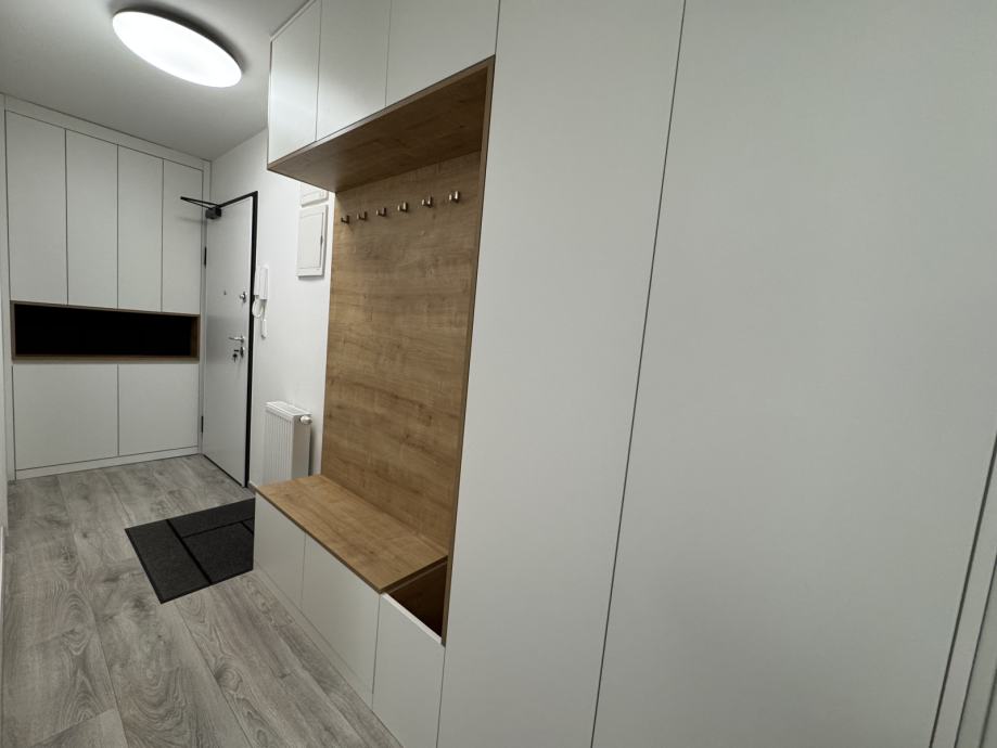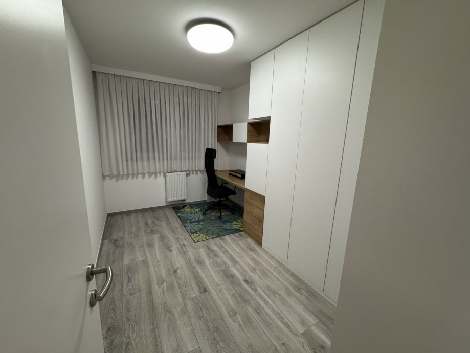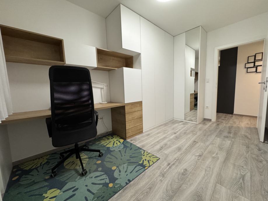 Stan se sastoji od hodnika, velikog dnevnog boravka i kuhinje, jedne spavaće sobe sa velikim krevetom (200x200), jedne radne sobe sa mogućmošću stavljanja kreveta, kupaonice sa wc-om, walk in tušem i perilicom rublja, te velikim balkonom sa garniturom i tendom. Balkon je prostran i ima otvoren pogled na livadu škole. U cijelom stanu se nalazi pametna rasvjeta Philips Hue.