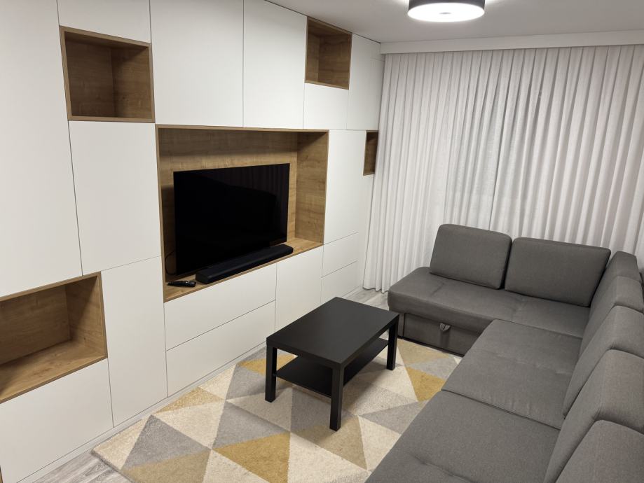 Iznajmljujemo potpuno namješten i opremljen stan na trećem katu stambene zgrade sa liftom u Velikoj Gorici. Orijentacija stana je jug. Ispred zgrade se nalazi autobusna stanica, a u blizini zgrade nalazi se osnovna škola, dječje igralište, veliki dućan, pekara, ljekarna, stanica vlaka. Do centra je potrebno 10 minuta pješice ili 2 minute autom.
