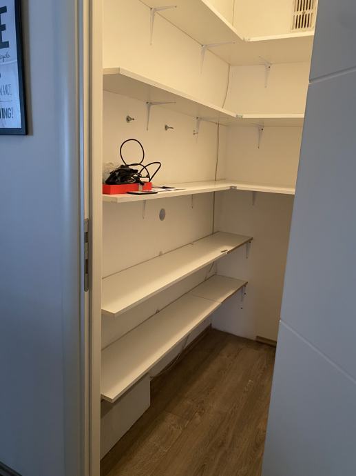Sastoji se od ulaznog hodnika, kuhinje i dnevnog boravka, 2 spavaće sobe, kupaonice, ostave i lođe.