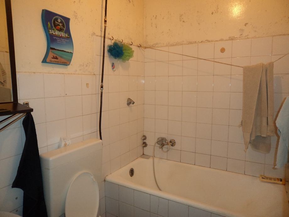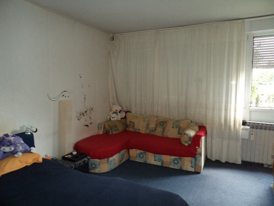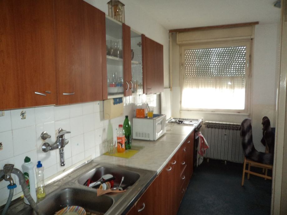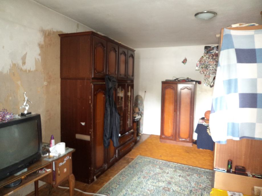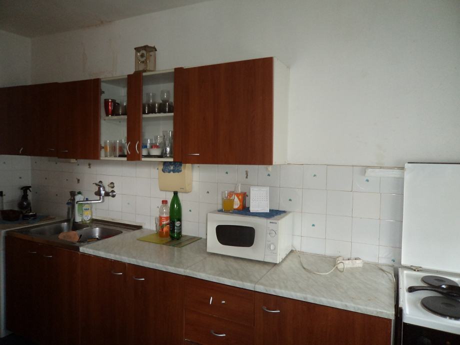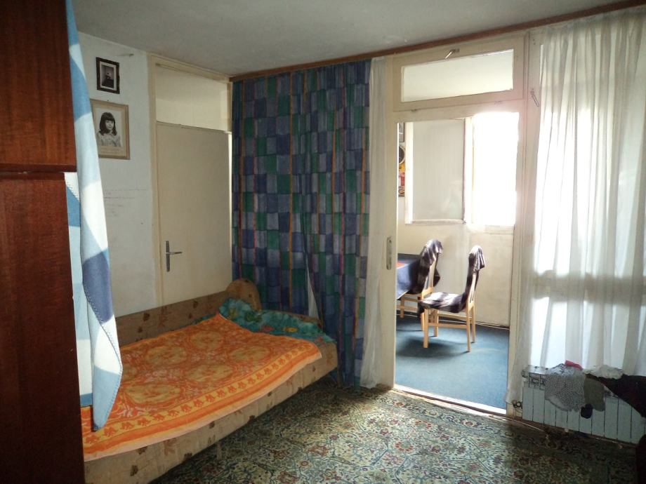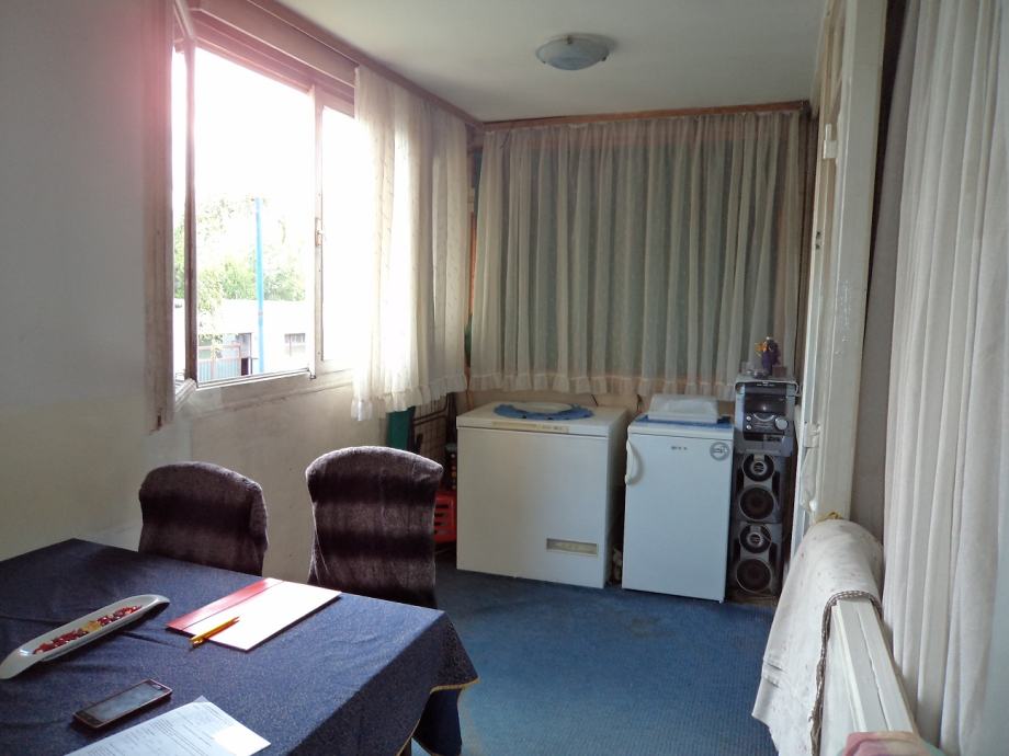 Dvosobni stan površine 60,43 m2 na 1.katu četverokatnice.Stan se sastoji od:ulaznog hodnika, kuhinje sa blagovaonicom,d.boravka iz kojega je izlaz na lođu, spavaće sobe,kupaonice i ostave.Stanu priapda i spremište u podrumu zgrade. Stan je potrebno urediti.