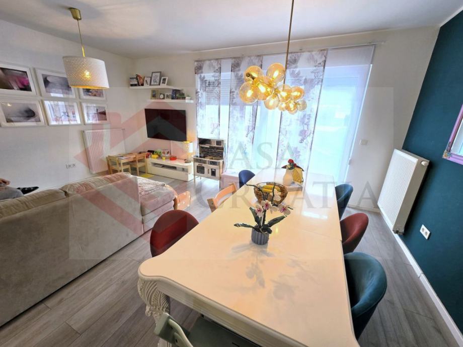 Prodaje se dvoetažni četverosobni stan neto korisne površine 104,55 m2 u velikogoričkom naselju Donja Lomnica u zgradi iz 2019. godine, odnosno kuća u nizu s posebnim ulazom.
