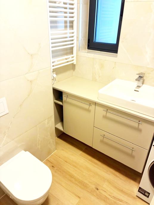 - Kupaonica: tuš-kada, umivaonik i WC školjka renomiranih proizvođača, niskošumni ugradbeni vodokotlić, dodatni električni radijator