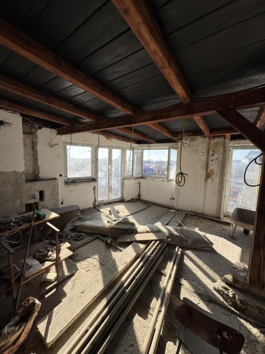 Smješten je na četvrtom katu zgrade, a posebnu vrijednost daje mu dodatni stan u potkrovlju, koji je nadograđen na petom katu. Time se otvara mogućnost uređenja prostranog i funkcionalnog dvoetažnog stana. Za gornji kat postoji važeća građevinska dozvola, što omogućuje trenutni početak adaptacije.