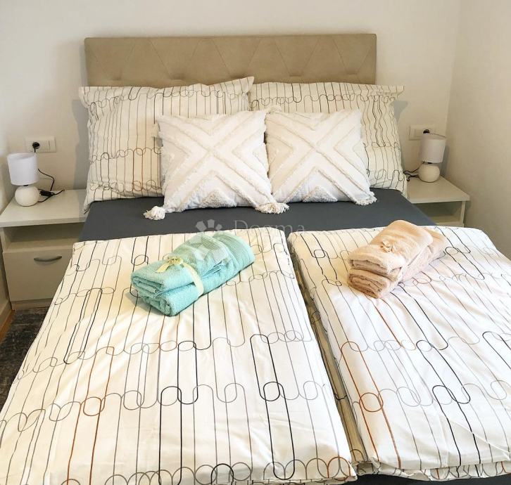 Stan 47,73m2 koji se sastoji od hodnika, kupaonice, ostave, dvije sobe, dnevnog boravka sa kuhinjom i blagovaonicom i sporednog dijela lođa 6,08m2 velika lođa 21,27m2 spremište u podrumu 4,14m2