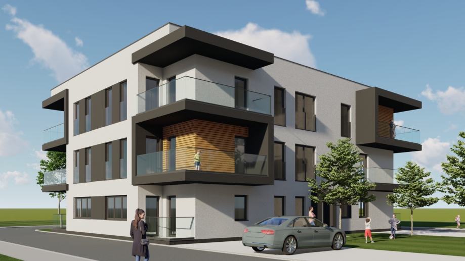 Moderna urbana zgrada u mirnoj ulici, a opet u blizini centra grada i svih potrebnih sadržaja za miran obiteljski život.
