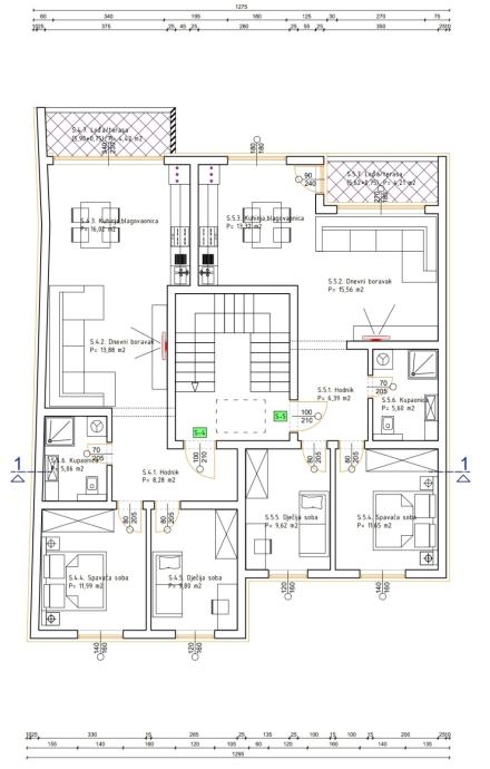 Drugi kat – 69,45 m² – dvije spavaće sobe