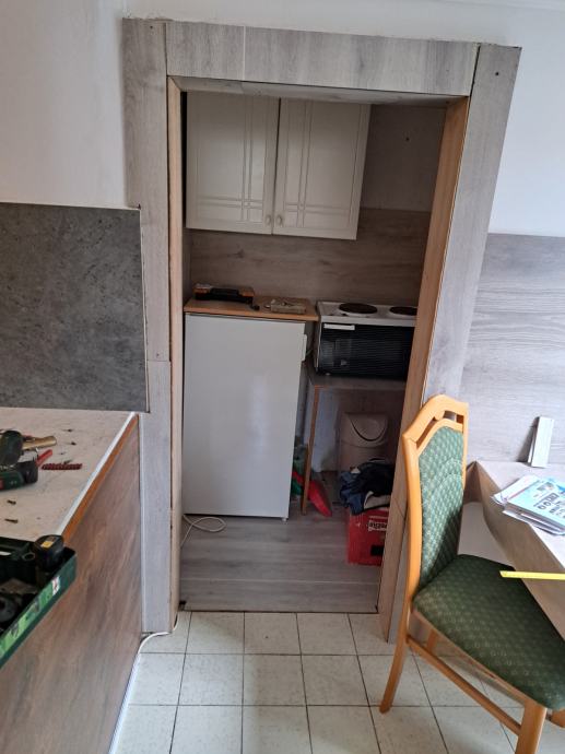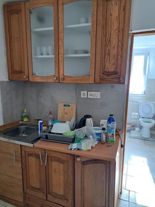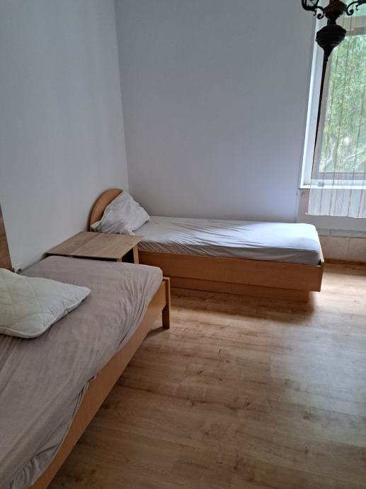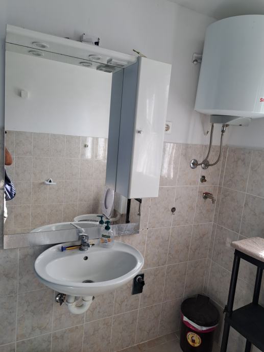 Stan od 43m2 udaljen 150m od mora i plaže za dugoročni cjelogodišnji najam.odvojena spavaća soba kaoi odvojena kuhinjica i blagovaona za 2-3 osobe.grijanje i hlađenje na klimu.veš mašina.cjena za cjelogodišnji najam 400e plus režije struje vode i smeća.Ako samo ljetnje mjesece onda je 600e.polog jedna mjesečna stanarina
