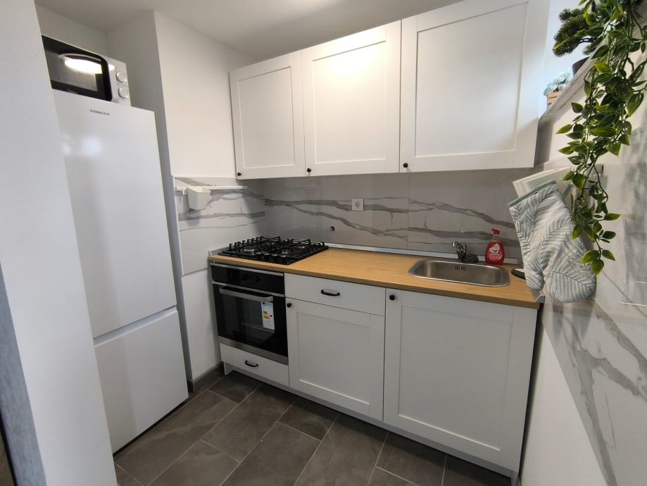 Sastoji se od spavaće sobe, dnevnog boravka, kuhinje, kupaone, hodnika i balkona.