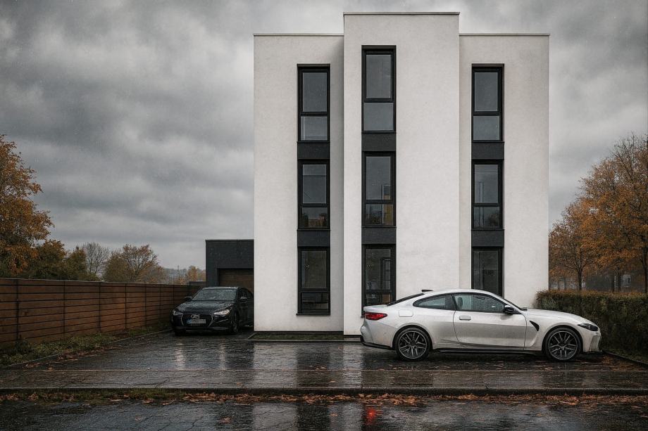 Urbana vila je u fazi izgradnje. Gradi se izuzetno kvalitetnim materijalima, fasadni izolacijski sustav sa 10 cm stiropora otporan na tuču (protugradni), vanjska stolarija PVC s 3-slojnim staklima i električnim podizačima roleta na staklenim stijenama (antracit izvana, bijela iznutra), unutarnja stolarija drvo, podne obloge kombinacija keramičkih pločica i parketa uz mogućnost odabira, visokokvalitetne sanitarije.