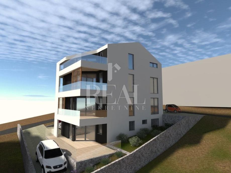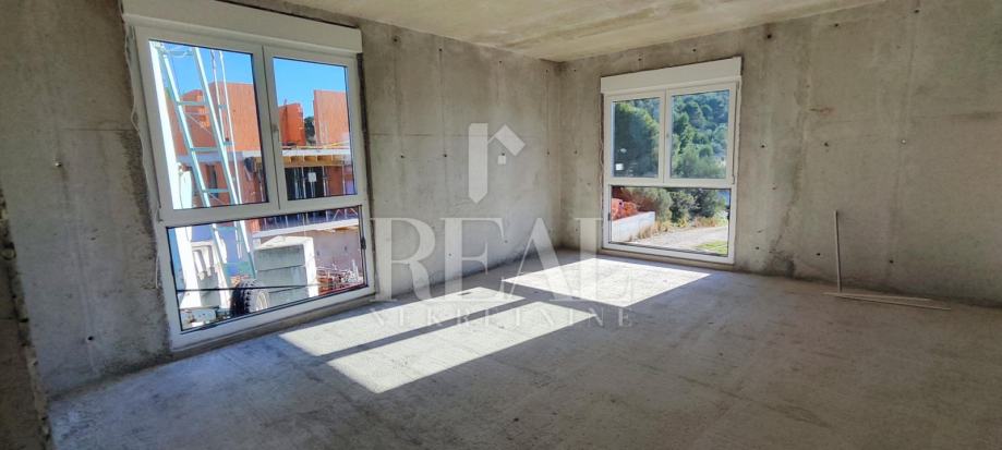 Novogradnja stan u visokom prizemlju manje zgrade sa svega četri stana površine 89m2 + terasa 33 m2 i dva parking mjesta.