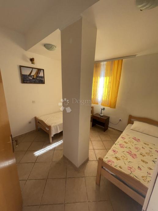 Na prodaju je atraktivna nekretnina u Vodicama koja predstavlja savršenu priliku za investiciju, posebno u turističke svrhe. Ovaj prostrani stan, ukupne površine 106,96 m², podijeljen je na dva zasebna stana, omogućujući fleksibilnost u korištenju i potencijal za ostvarivanje prihoda od iznajmljivanja.