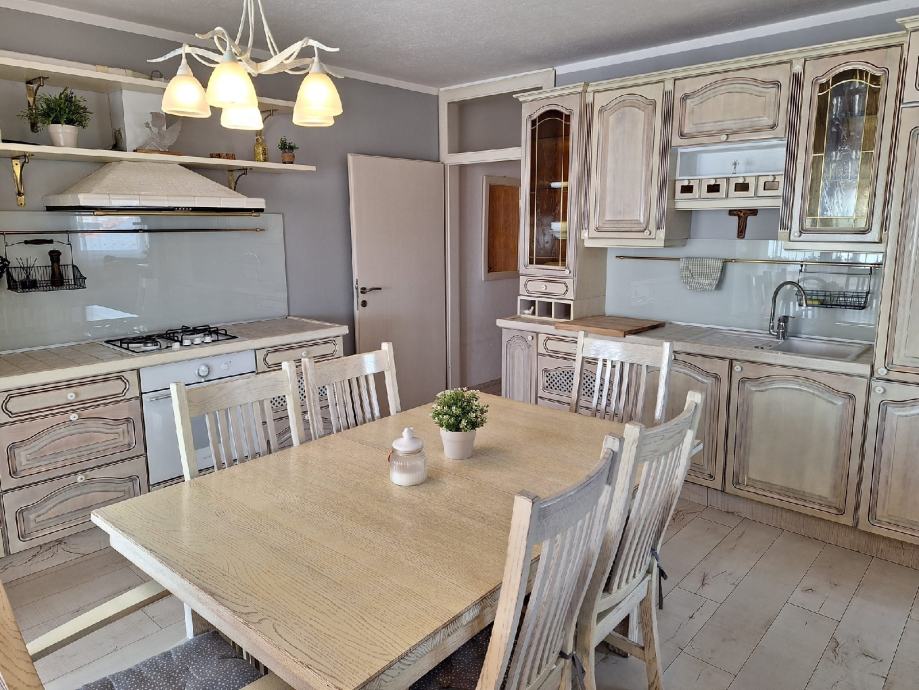 U cijenu je uključen kompletan namještaj(ormari po mjeri,blagovaonica i dnevni boravak s dijelom namještaja od punog drva),kuhinja s ugradbenim uređajima.