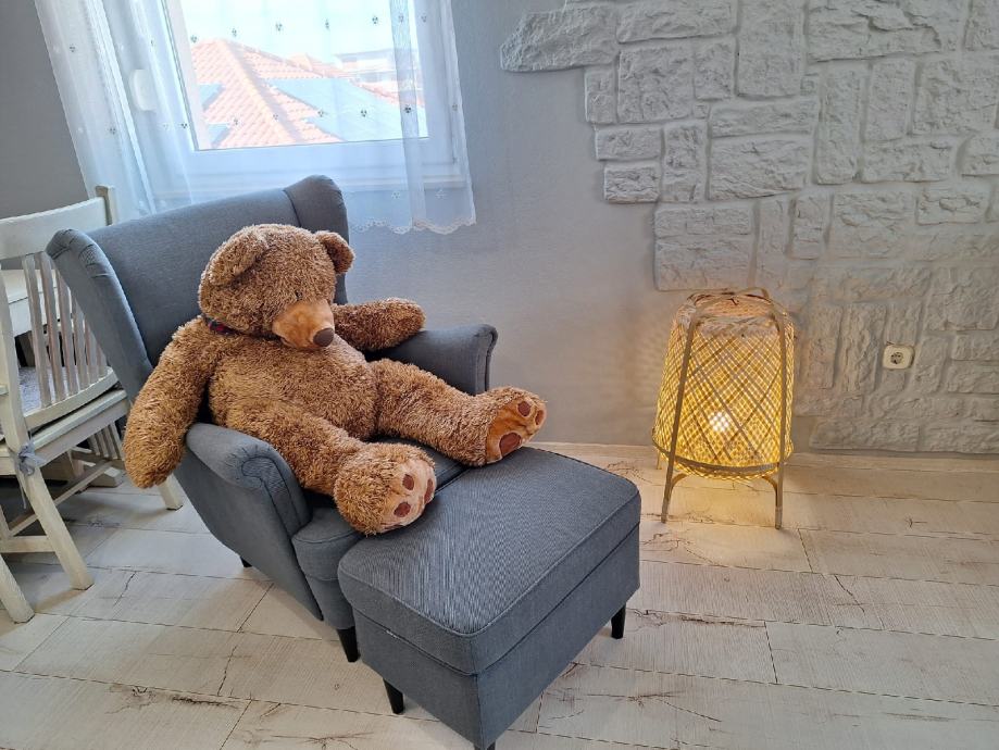 Udaljenost od centra i plaže oko 650 m.Blizina škole i vrtića.