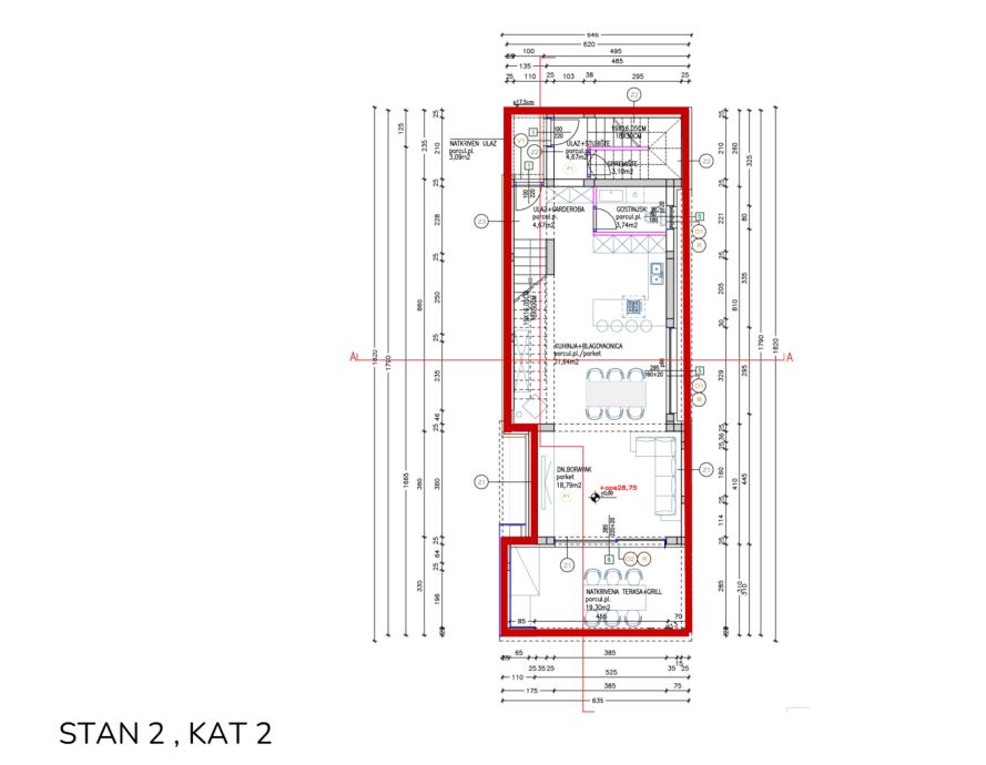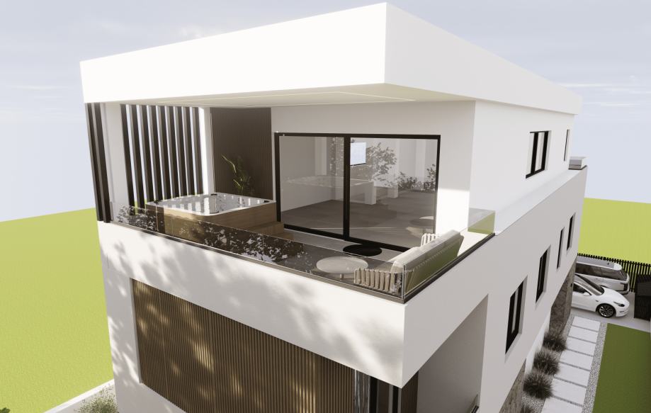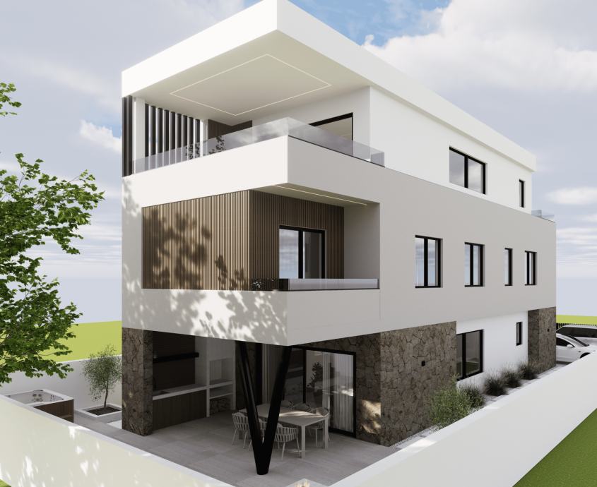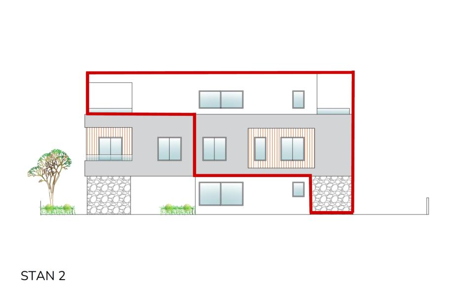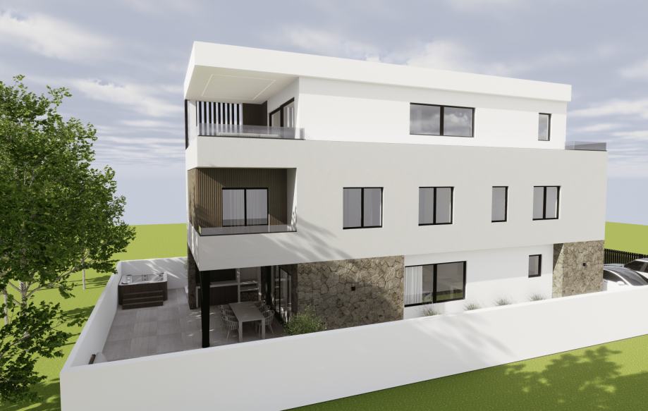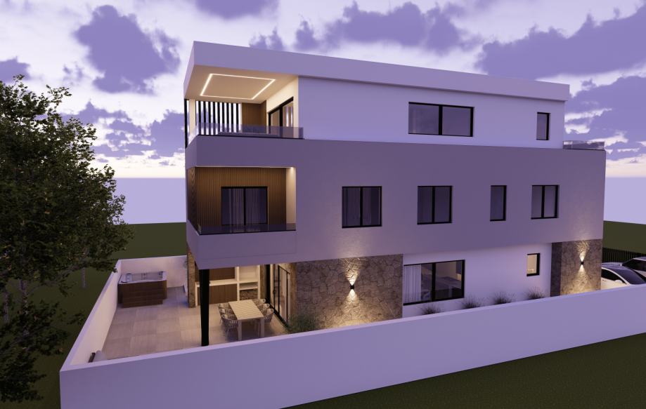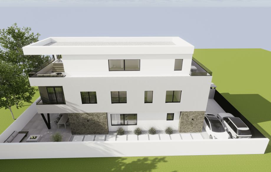 Prodaju se dva stana u modernoj stambenoj jedinici smještenoj u mirnijem dijelu grada, svega 1000 m od mora. Nekretnina predstavlja savršen spoj udobnosti i funkcionalnosti te je idealna za obiteljski život ili investiciju. Planirani početak gradnje je jesen 2025. godine, a gradit će se po zadnjim standardima gradnje sa visokokvalitetnim materijalima. Stanovi će imati odvojene ulaze te svaki po 2 parkirna mjesta. Stanovi su dvoetažni.