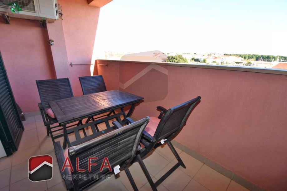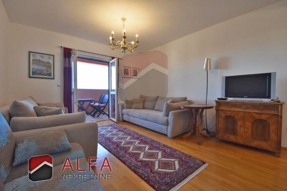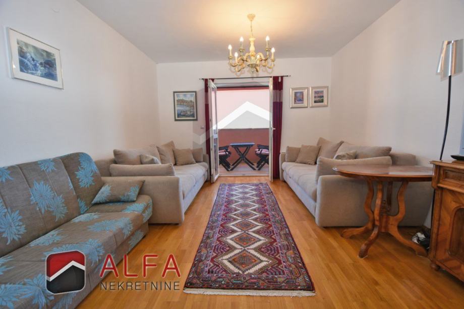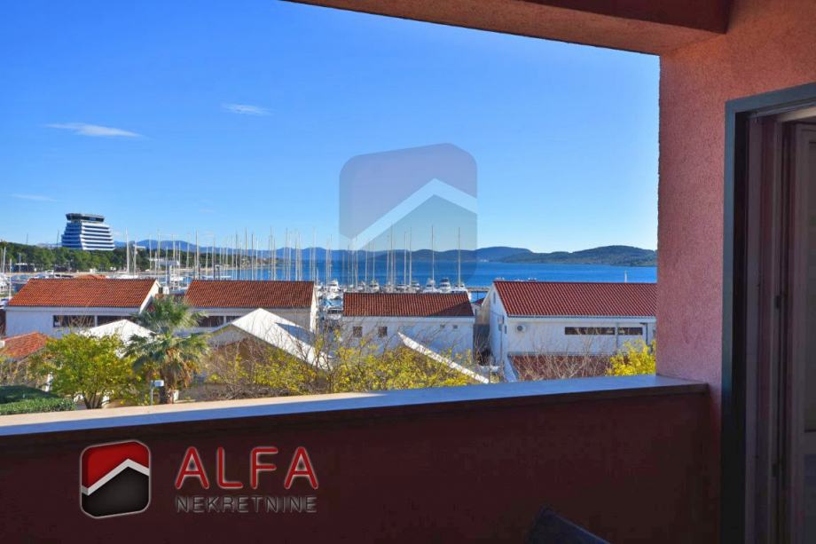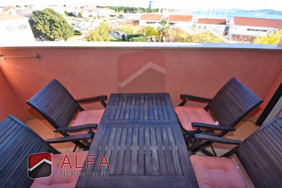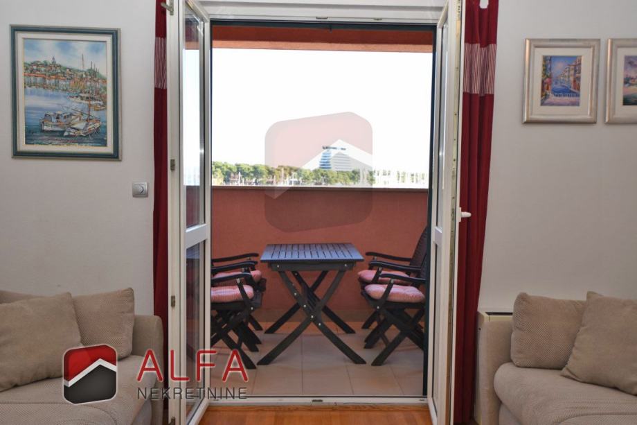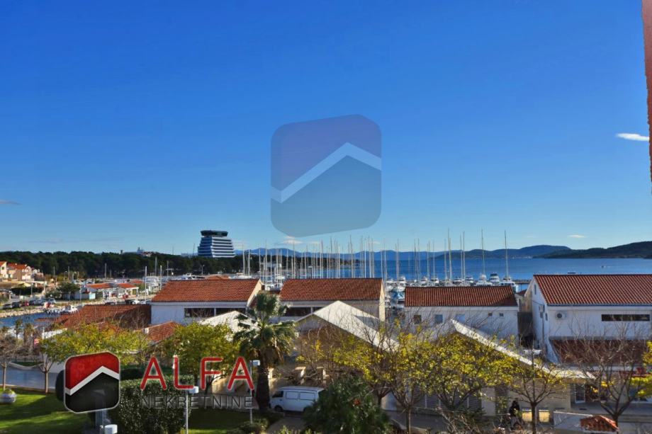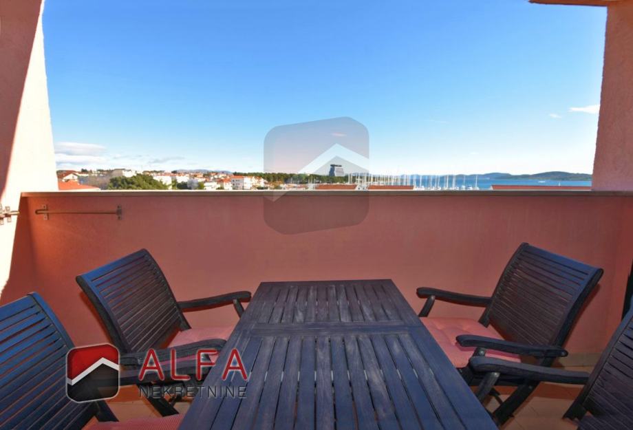 Vodice, prodaje se komforan moderan apartman u centru Vodica, na rivi, sa panoramskim pogledom na lijepo uređen park, more i otoke. Udaljen je samo 80 metara od mora. Apartman ima površinu 63,90 m2 i nalazi se na trećem katu stambeno poslovne zgrade. Sastoji se od jedne spavaće sobe, dva hodnika, kupaonice sa kadom i toaletom, izdvojene kuhinje, blagovaonice i dnevnog boravka, te natkrivenog balkona s pogledom na more.