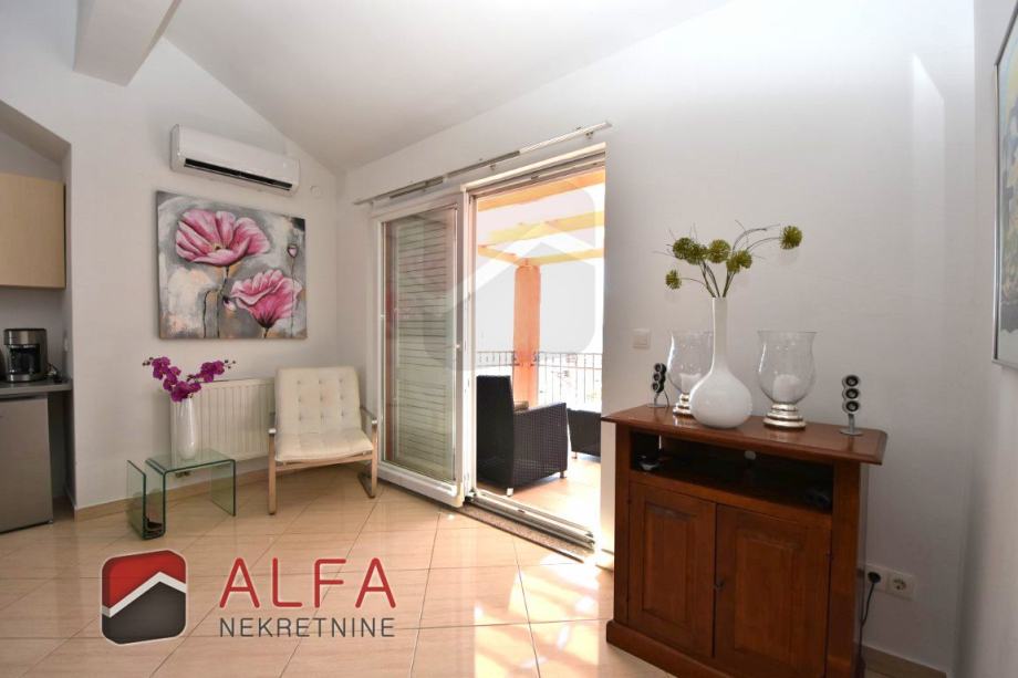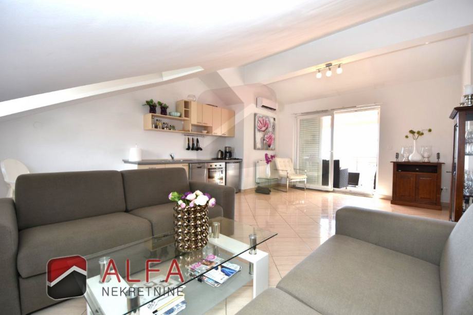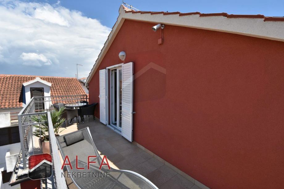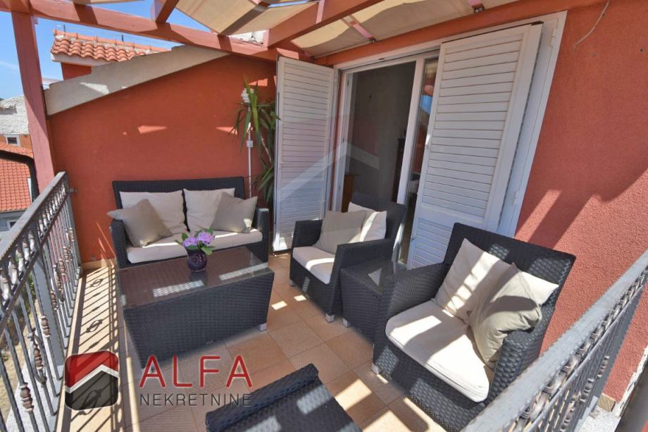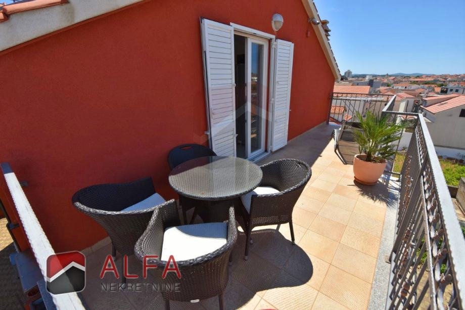 Vodice centar, prodaje se lijepo namješten komforan trosoban stan na drugom katu zgrade (potkrovlju). Nalazi se u mirnom okruženju i udaljen je od mora samo 300 metara.