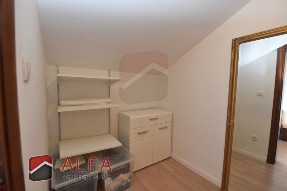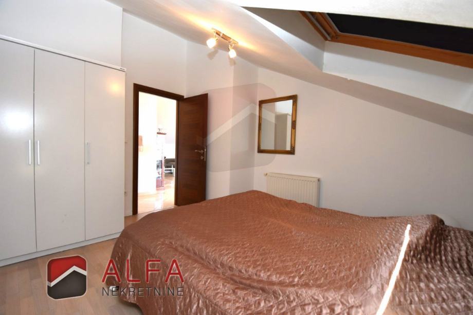 Stan ima površinu od 114,48 m2 i prostire se kroz cijelu etažu drugog kata. Ima ukupno tri spavaće sobe i dvije kupaonice.