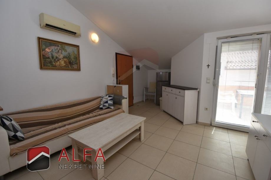 Vodice, prodaje se dvosoban stan u mirnom okruženju. Nalazi se na drugom katu (potkrovlju) zgrade udaljene 450 metara od mora.