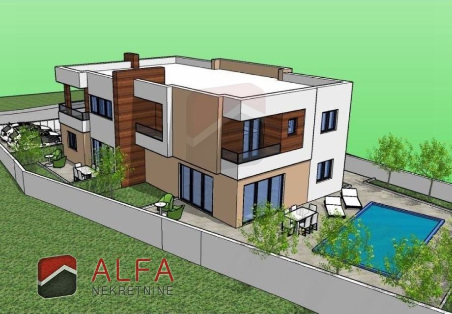 Vodice prodaje se novi dvosoban stan u izgradnji, u zgradi udaljenoj 950 metara od mora. U ovoj cijeloj zgradi moderne arhitekture se nalaze samo tri stambene jedinice.