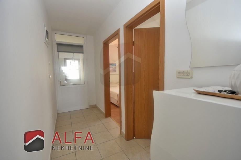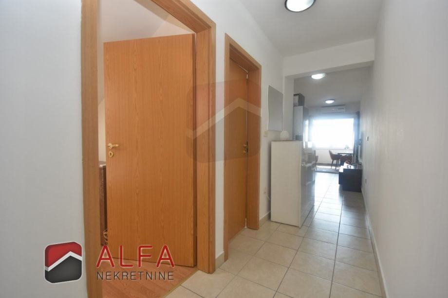 Ovaj apartman ima površinu 56,88 m2 + lođa od 16,39 m2 + jedno parkirno mjesto od 12,50 m2. Sveukupno sa obračunatim koeficijentima apartman ima površinu od 60,80 m2.