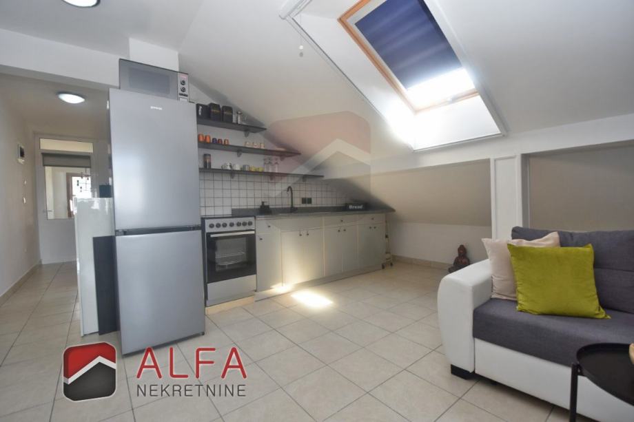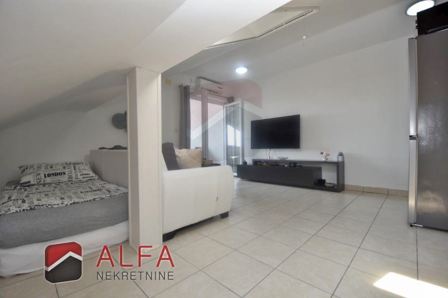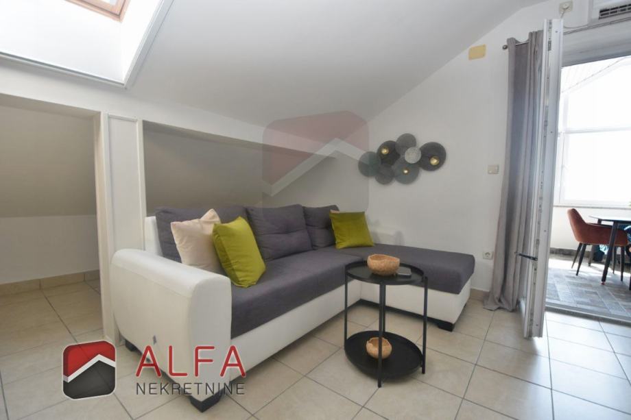Vodice, prodaje se jednosoban komforan namješten apartman na drugom katu (potkrovlju) zgrade udaljene od mora 1,5 km.