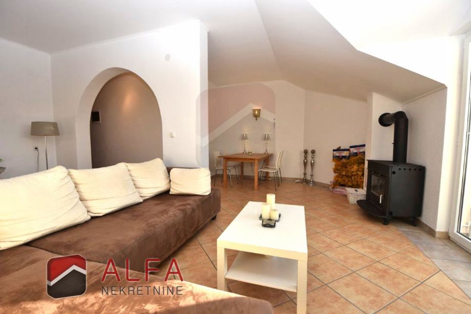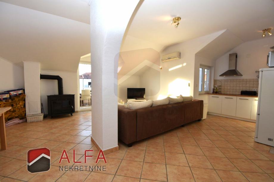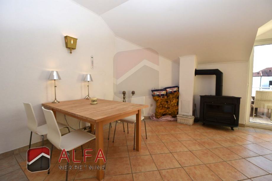 Ovaj stan ima svoje vlastito brojilo za struju i za vodu. Klimatiziran je, ima dimnjak te peć na drva za zimske dane. Potpuno je namješten i spreman za useljenje. Cijena uključuje namještaj.