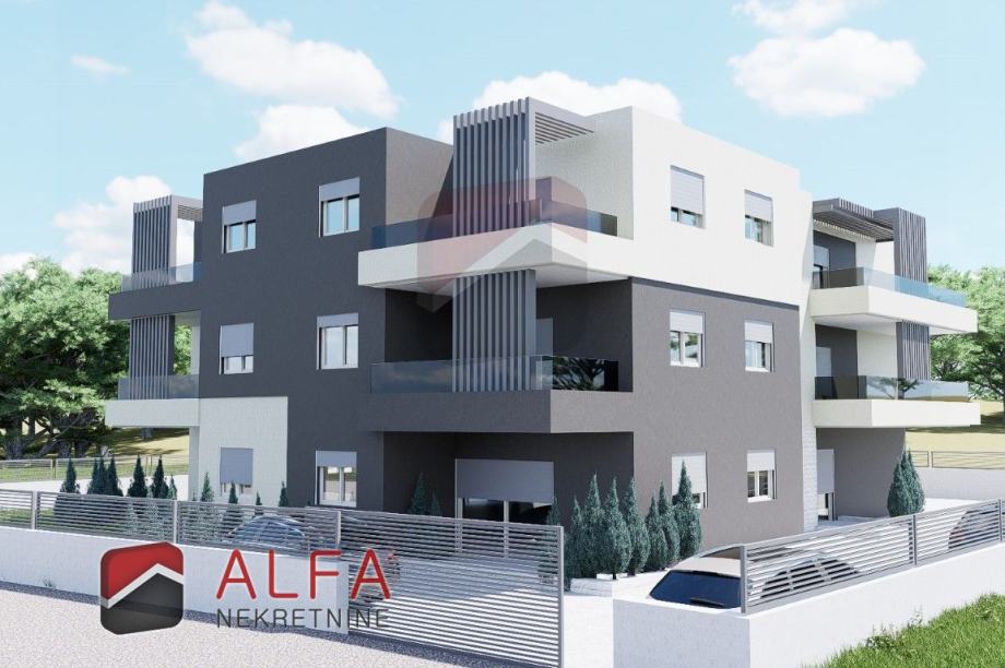 Vodice, Srima, prodaje se lijepi stan u izgradnji, na drugom katu nove moderne stambene zgrade. Zgrada je udaljena 550 metara od mora i nalazi se u mirnom okruženju.