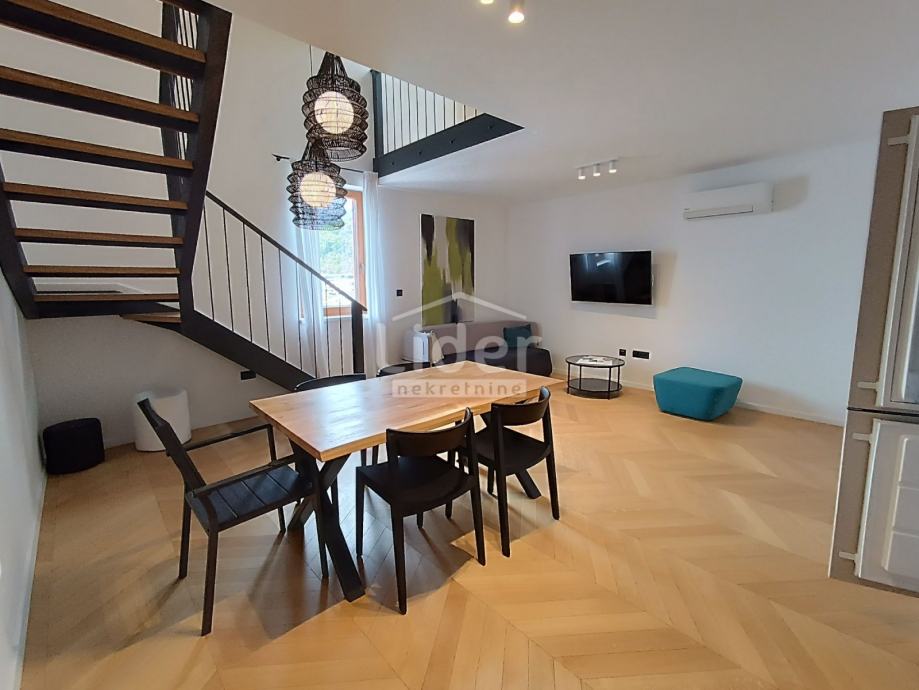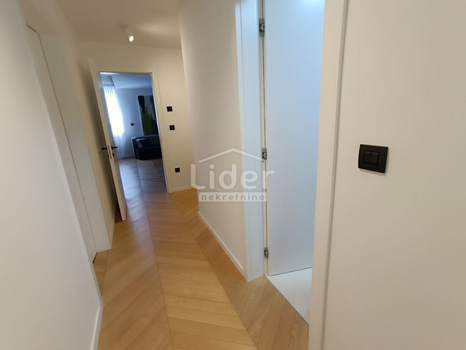 Stan je kompletno novouređen i vrlo kvalitetno opremljen. Pripada mu dio okućnice, garažno parkirno mjesto.