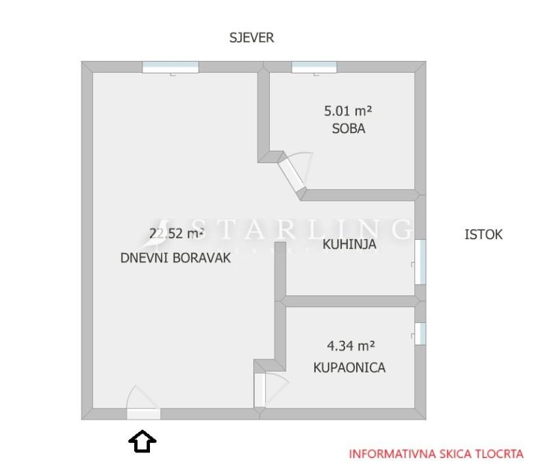 Stan se sastoji od dnevnog boravka, kuhinje, spavaće sobe te kupaonice s wc-om.