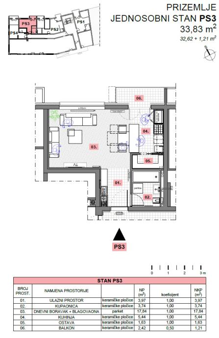 Jednosobni stan od 33,83 m2.