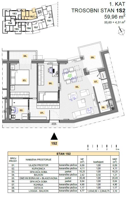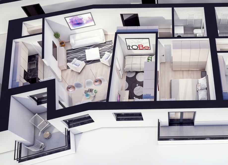 Trosobni stan od 59,96 m2.