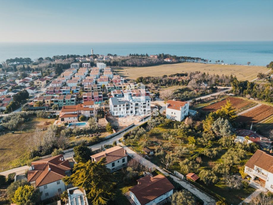Prodaje se stan s vrtom 300 m od mora i plaže u okolici Umaga, Bašanija. Ukupna površina stana je 64 m2 te se sastoji od 2 spavaće sobe, dnevnog boravka, hodnika, kuhinje, kupatila, terase i vrta od 34 m2. Zgrada se sastoji od 14 stanova te se gradi kvalitetnom poroterm ciglom te posjeduje lift. Fasada je energentska s termoizolacijom debljine 10 cm (stiropor). Stanu pripada spremište u podrumu i jedno parkirno mjesto.