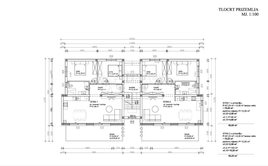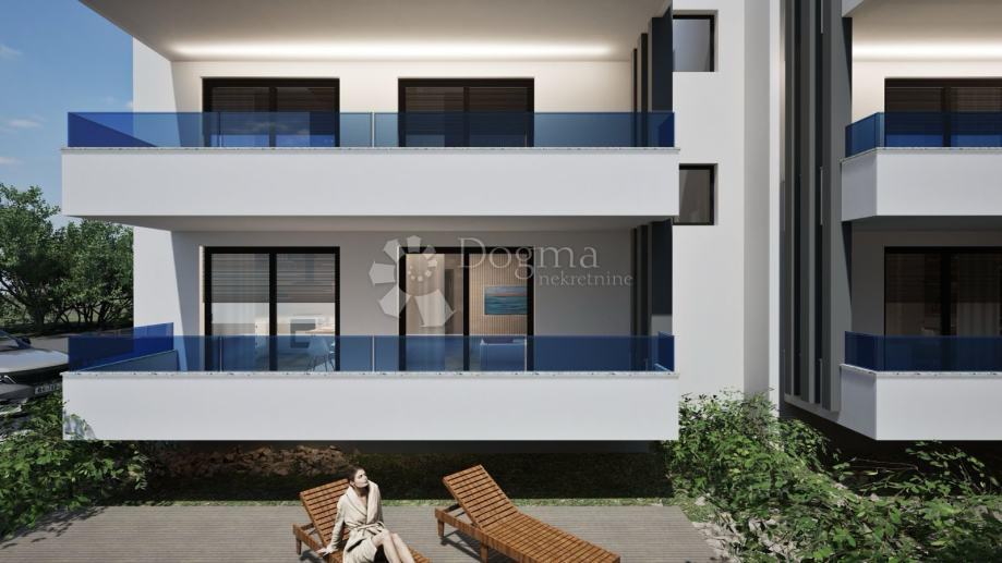 Prodaje se stan S1 u prizemlju novogradnje u Sukošanu. Stan ima površinu od 82,63 m², a pripada mu i vrt od 46 m² koji pruža dodatni osjećaj privatnosti i prostora za boravak na otvorenom – idealno za obitelj s djecom, kućne ljubimce ili vrtni odmor. Lokacija je iznimno mirna, s pogledom na maslinike, a plaža i more udaljeni su svega 200 metara, što ovu nekretninu čini vrlo atraktivnom za život, ali i za turizam.