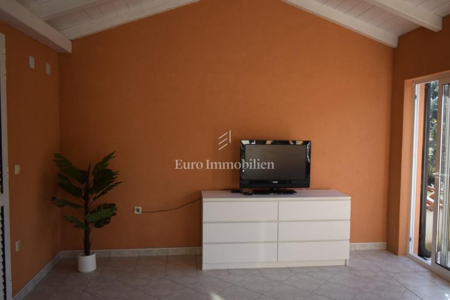 Stan se sastoji od ulaza, kuhinje i dnevnog boravka te sobe i kupaonice, ukupne površine 35,45 m2, uz to stanu pripada velika zatvorena nadstrešnica 47m2 u kojoj se nalazi dodatni prostrani dnevni boravak.
