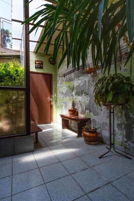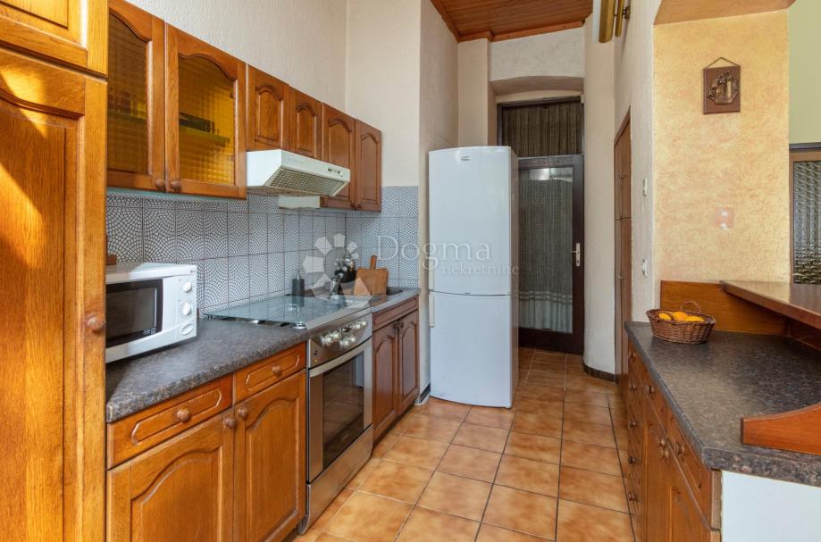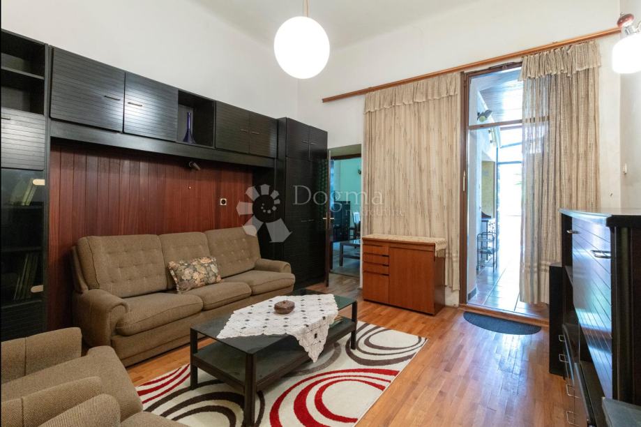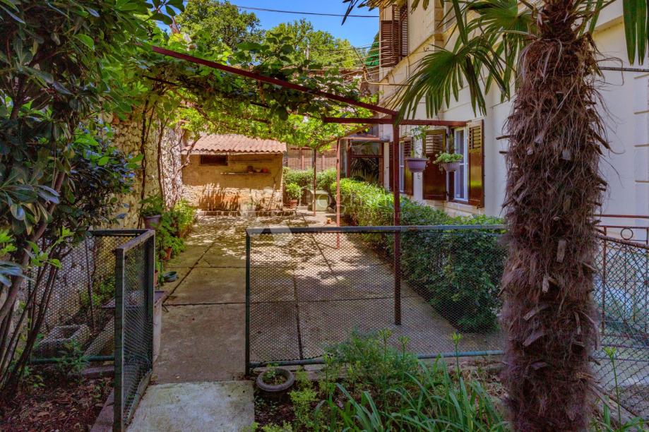U prodaji imamo stan u prizemlju starije zgrade, ispred kojeg je lijepa ograđena okućnica na korištenje. U naravi on ima tri spavaće sobe i posebno dnevni boravak, ostavu, kupaonu, verandu i drvarnicu pretvorenu u radionu. Iz nekretnine izlazimo na popločenu terasu sa roštiljem, natkrivenu gustom brajdom, te na dio sa vrtom i voćnjakom. Dio terase je pretvoren u stambeni prostor, stoga se stan može kupiti isključivo za gotovinu, ali sa svojim komforom i lijepom okućnicom nadomak centra grada, predstavlja zbilja rijetkost na tržištu. Nekretnina traži osvježenje, ali je uredna, namještena i useljiva. Grijanje je predviđeno na struju. Postoji i dimnjak ako tko voli drva ili pelete.