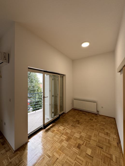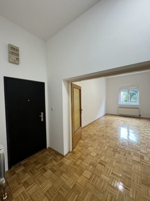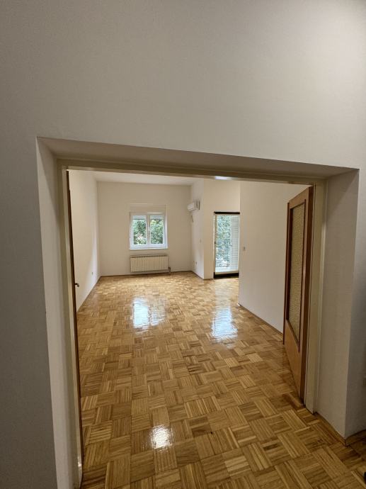 U stanu se nalazi klima uređaj te plinsko centralno grijanje. Svježe renoviran, brušen i prelakiran parket, promijenjena vanjska stolarija te ugrađena pvc ulazna vrata. U stanu se nalazi veliki dnevni boravak, kuhinja, kupaonica i odvojeni wc, dvije spavaće sobe, dvije ostave te balkon.