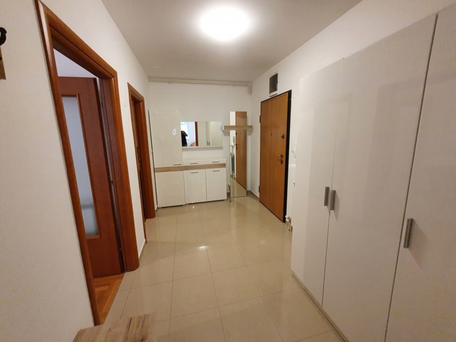 Iznajmljuje se stan koji se nalazi u zgradi mješovite uporabe na adresi Stjepana Radića 38, Zabok. Stan se sastoji od hodnika, kupaonice, dnevnog boravka s kuhinjom i dvije sobe ukupne korigirane neto površine 66,42 m2, te parkirnog mjesta korigirane neto površine 3,16 m2, spremišta korigirane neto površine 3,64 m2 i kućnog vrta korigirane neto površine 4,82 m2.