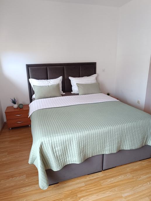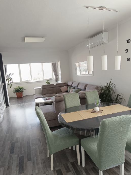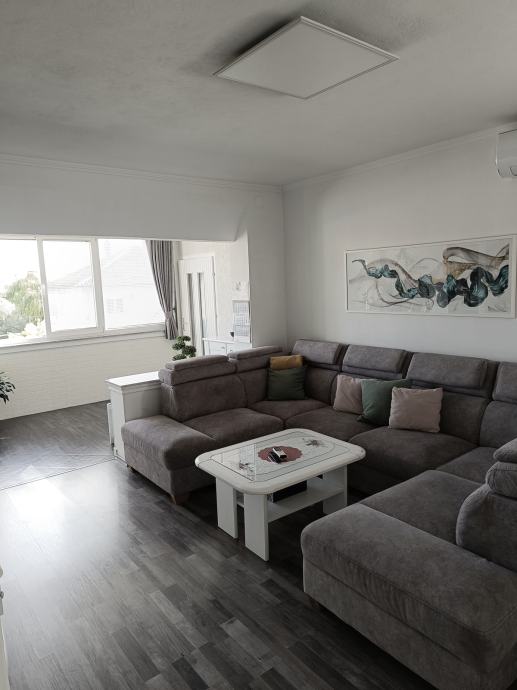 Apartment for sale on the first floor of a private house (separate apartment on the ground floor has been sold). It consists of 3 bedrooms, a spacious hallway, a bathroom with toilet, a hall and an open concept kitchen, dining room and living room. The apartment was renovated in 2021 and is fully furnished. It is divided into floors, has separate connections and neat ownership. It also includes an unfinished attic of 102.67m2 with the possibility of arranging another residential unit. It has its own yard with two parking spaces and a covered staircase. Next to the house there is a garden, a fireplace, a tavern with a toilet, a laundry room + storage room. The apartment is in the immediate vicinity of a kindergarten, a clinic, a pharmacy and a market. The distance from the sea is only 5 minutes drive. Agencies excluded! Price negotiation possible