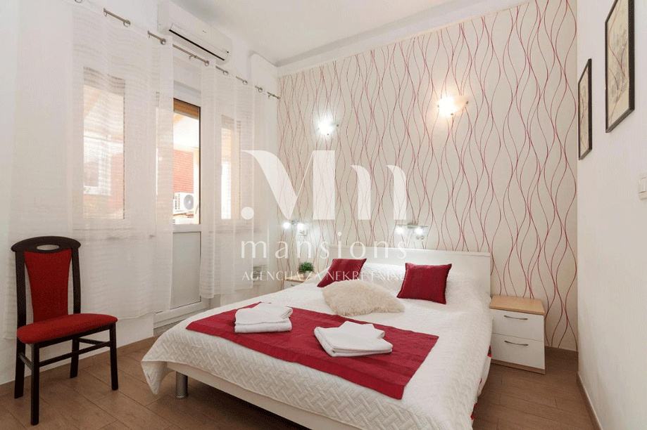 Stan je trenutno podijeljen na jedan jednosobni stan (opremljen kuhinjom, blagovaonicom, kupaonicom i spavaćom sobom) i tri sobe/studio apartmana koji se sastoje od spavaće sobe, kupaonice i terase. Idealna prilika za bavljenje turističkom djelatnošću s obzirom da nekretnina predstavlja već uhodani, uspješni posao.