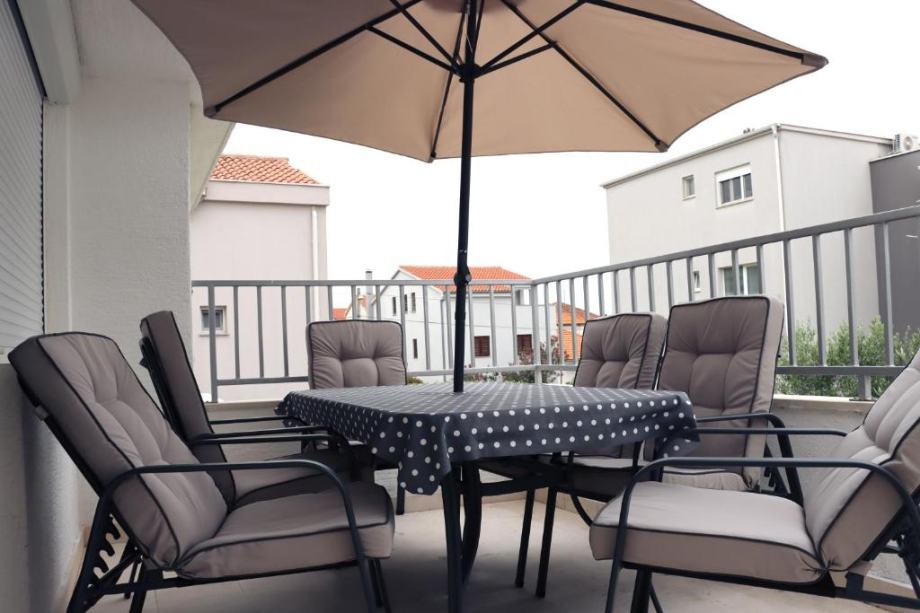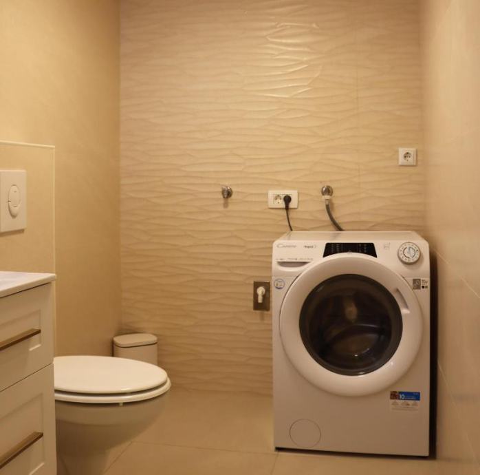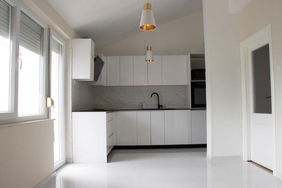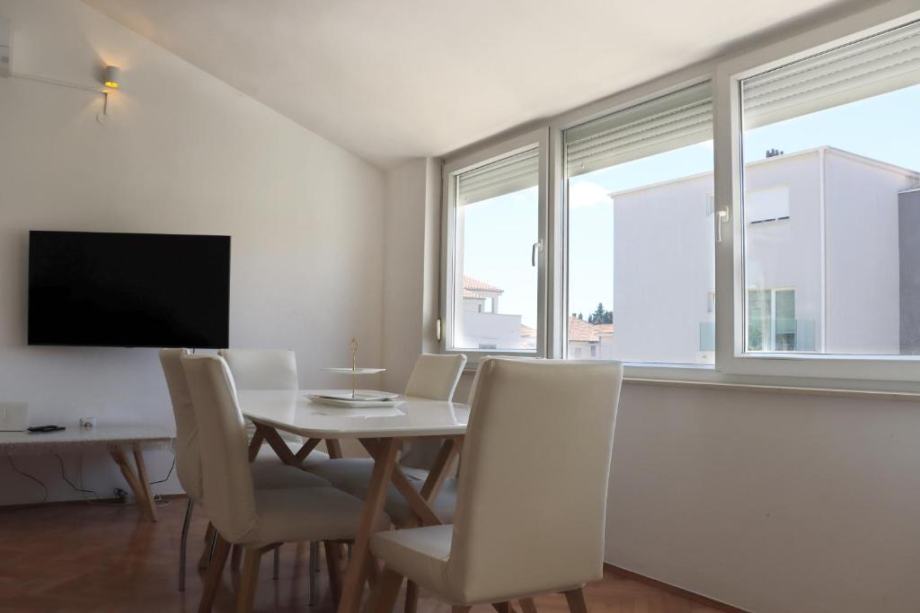 Stan se sastoji od opremljene kuhinje sa blagavaonicom, dnevnog boravka, balkona. 3 spavaće sobe, 2 kupaonice (kada i tuš kabina). Stan ima zaseban ulaz te parkirno mjesto. 4 klima uređaja.