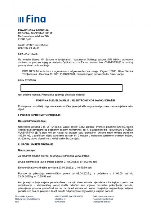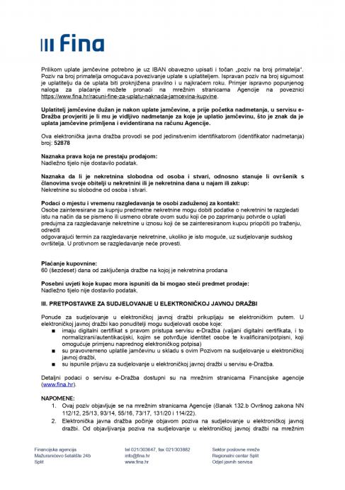 Druga elektronička javna dražba počinje 27.01.2025.g. u 15:00:00 sati.