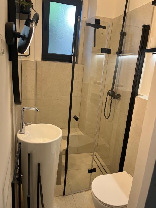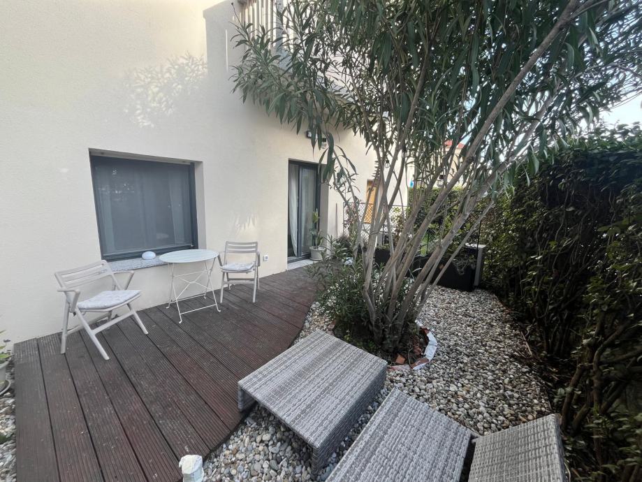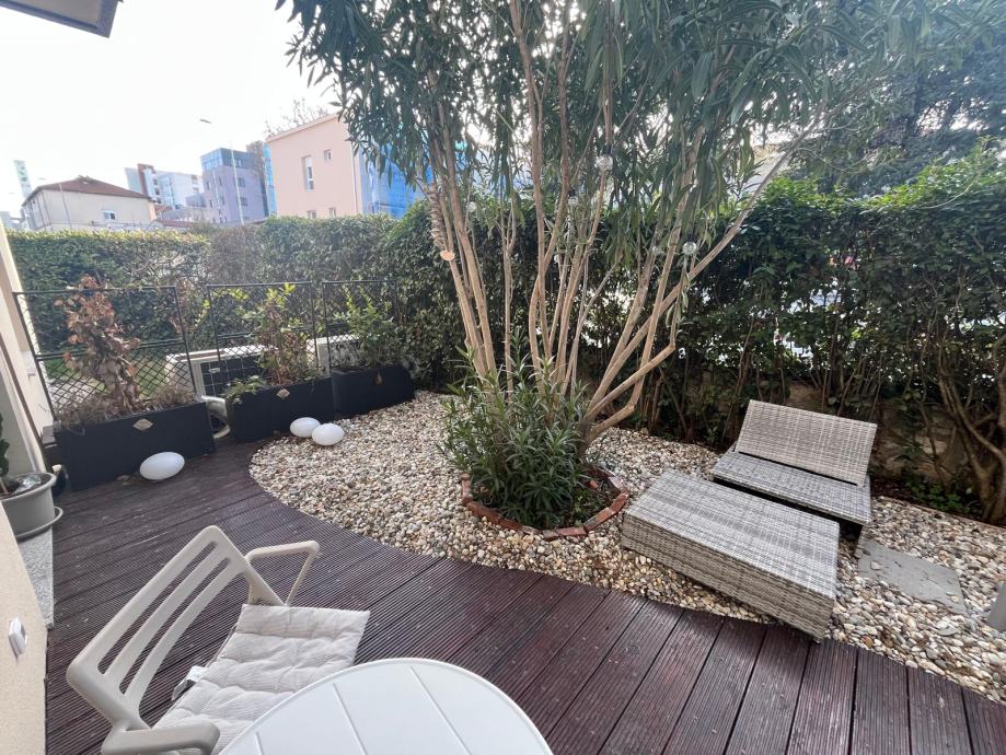potpuno novouredjen stan s terasom, za dvije osobe / par, na izvrsnoj lokaciji, s privatnim parkingom i vrtom, na dvije minute hoda od bolnice, 4 minute hoda do gradske plaze / bazena i 7 minuta hoda do stare jezgre grada