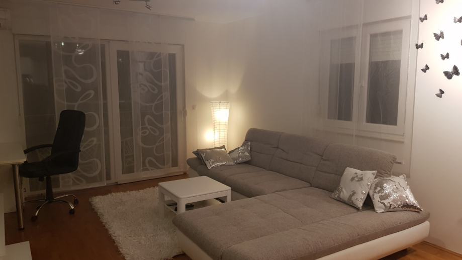 Stan je odmah useljiv jer je opremljen svim namještajem, kuhinjom rađenom po mjeri i svim aparatima (kombinirani štednjak na plinsku bocu i struju, digitalna pećnica, napa, veliki hladnjak, klimatizacijski uređaj s inverterom). Spavaća soba (ormar i krevet) je rađena po mjeri, a orijentirana je na sjeveroistok, dok je dnevni boravak orijentiran na jugozapad tako da je pun sunca tijekom cijele godine, zbog čega je klimatizacijski uređaj dovoljan za grijanje tijekom zimskih mjeseci (siječanj i veljača). Kupaonica je potpuno opremljena i spremna za korištenje. U dnevnom boravku je velika kutna garnitura koja se razvlači i komotna je za spavanje 2 odrasle osobe.
