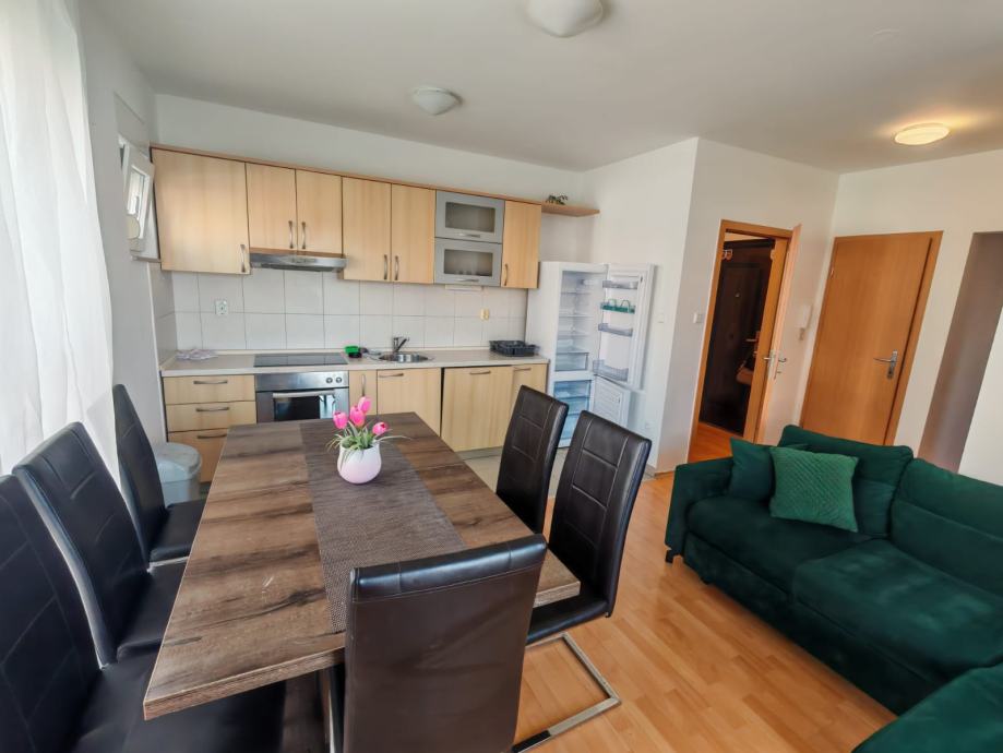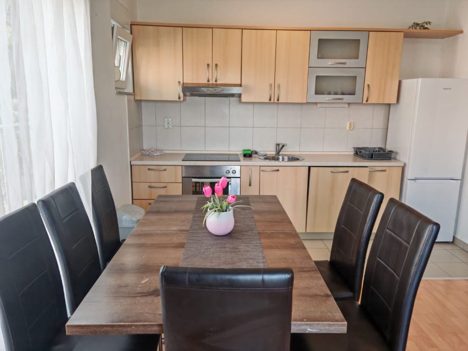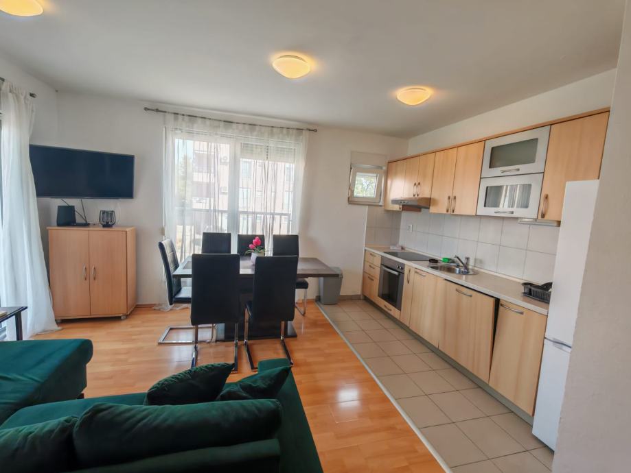 Stan se sastoji od kuhinje s dnevnim boravkom, kupaonice,2 spavaće sobe, ostave,balkona, uz neograničen internet, TV , klima uređaj, radijator, grijalica, perilica za suđe i rublje , nikad korišten novi bračni krevet, itd.