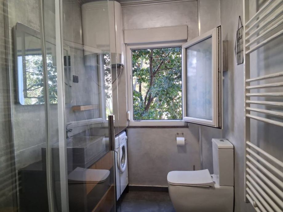 Kupaonica je uređena modernom keramikom RAK i opremljena prostranom tuš kabinom , Ariston bojlerom i perilicom rublja.