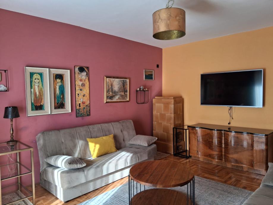 Spavaća soba opremljena je elektroničkim ležajem i ima izlaz na šarmantni mali balkon , pored se nalazi veliki dnevni boravak koji također ima izlaz na balkon , ugrađena je kaljeva peć , što prostoru daje poseban karakter i ugođaj.