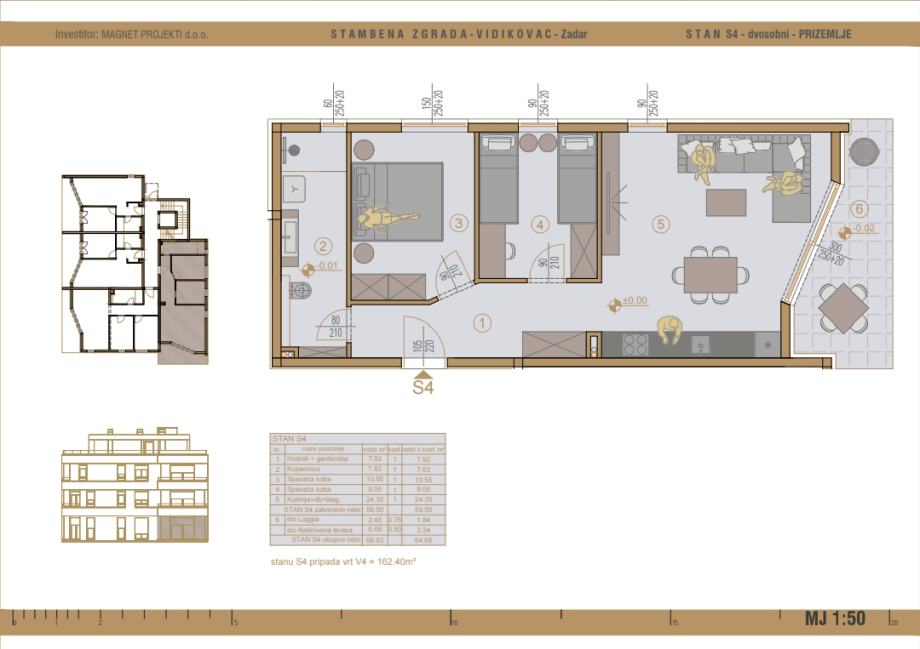 Ukupna stambena površina iznosi 64,68 m2.