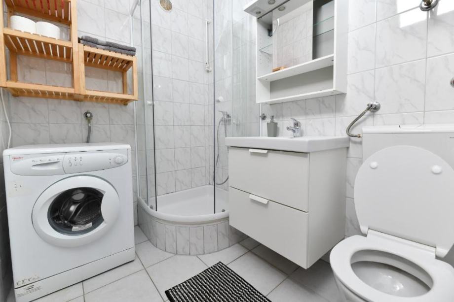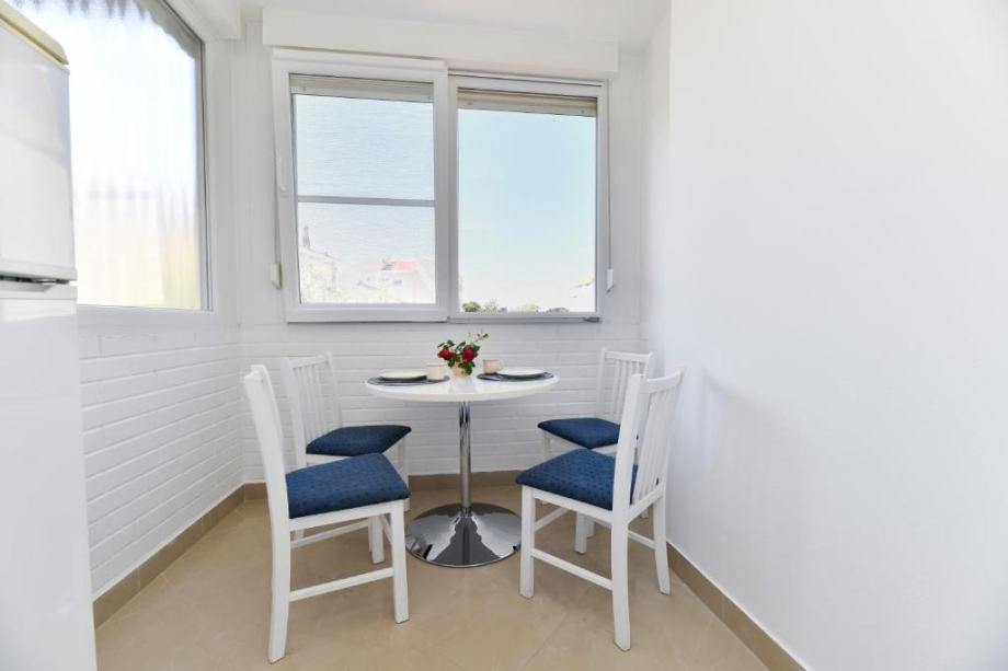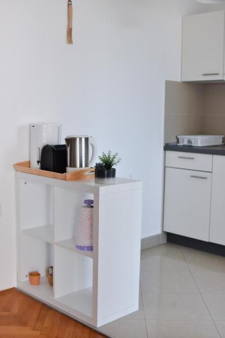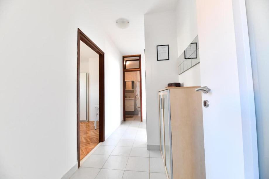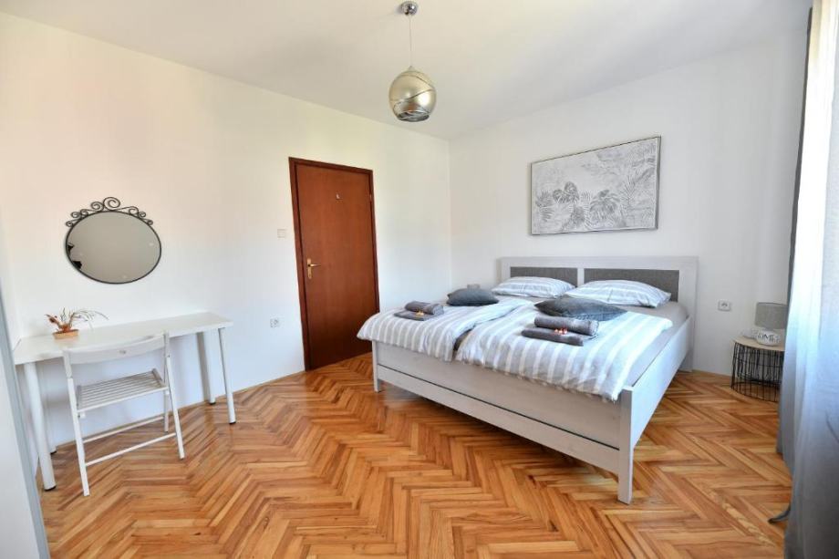 Stan se nalazi na prvom katu obiteljske kuce sa posebnim ulazom i portafonom.Sastoji se od predsoblja, dnevnog boravka, kuhinje, blagovaonice, velike spavace sobe, kupatila i balkona. Potpuno je namjesten i opremljen svim kucanskim aparatima, kompletnom posteljinom i rucnicima, Kuhinja je opremljena sa svim potrebnim posudjem (case, tanjuri, lonci,masina za kavu, toster..)