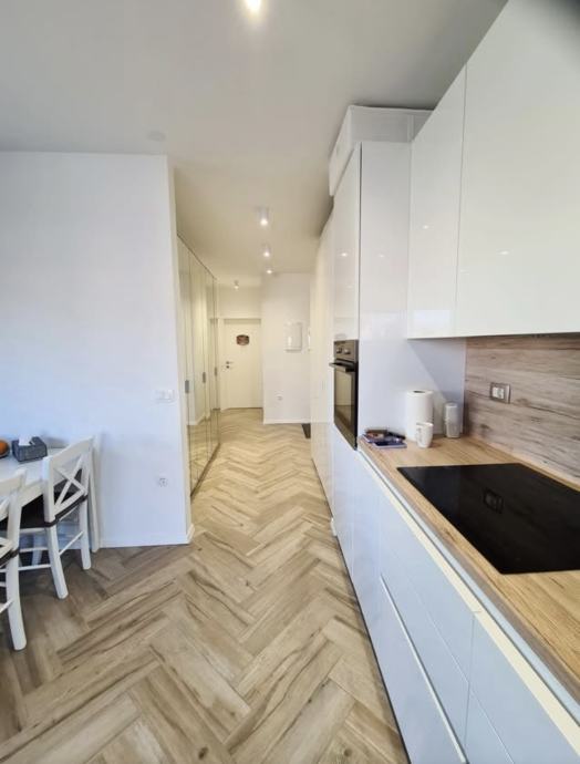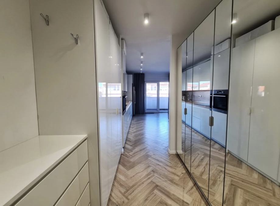 Stan je potpuno namješten i opremljen kvalitetnim namještajem i kućanskim aparatima (Electrolux, Samsung). U svakoj prostoriji nalazi se klima uređaj, a stan ima i podno grijanje te kvalitetnu keramiku.