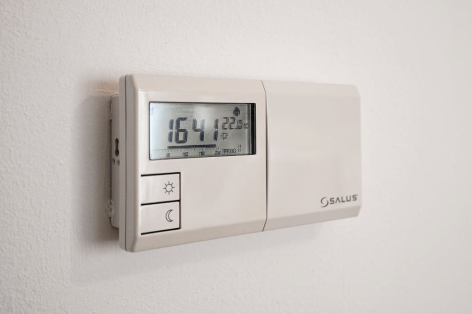 Podno grijanje u svim prostorijama putem dizalice topline. Na isti sustav priključena je i priprema tople vode.